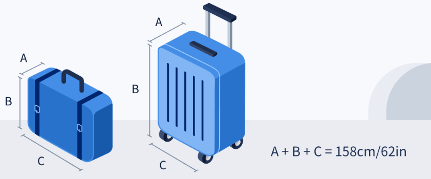 아래 내용에서 기내에 휴대하는 수하물의 규격은 세 변의 합이 115cm(45in) 이내 또는 각 변이 20cm, 55cm, 40cm를 초과해서는 안됩니다. 좌석 등급 중 일등석 및 프레스티지석은 2개의 수하물(18kg) 이하의 수하물을 허용하며, 일반석은 휴대 수하물 1개와 휴대용 가방 1개로 10kg를 초과할 수 없습니다. 또한 기내 수하물은 선반 위, 앞 좌석 의자 밑에 보관하는 것이 규정이오니 승무원들의 지시를 잘 따르시면 됩니다.